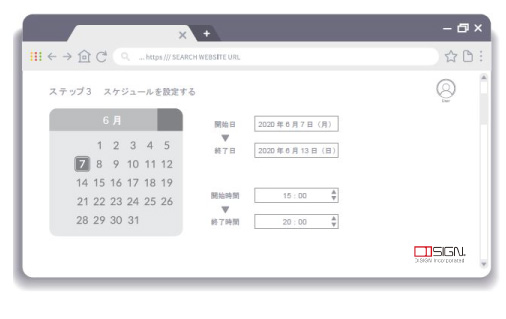- コンテンツの表示スケジュールを設定する。(※画面イメージです)